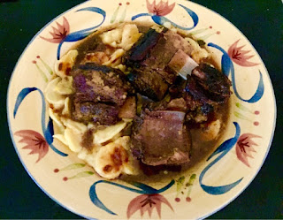 Finally for the perfect Sunday dinner that didn't heat up the house, slow cooked short ribs! I just browned the meat for a few minutes and then tossed them into the slow cooker with a can of Guinness. The meat was falling off the bones after cooking for 10 hours and I served them over a new find, Potatoes Au Gratin. SO much easier than making those potatoes from scratch and tasted just as good!