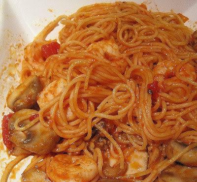 With the left-over shrimp, I made a simple Shrimp and Angelhair Pasta. It was just shrimp, pasta, mushrooms and store-bought Marinara sauce. Nothing fancy, just an easy and yummy Christmas Eve Dinner!